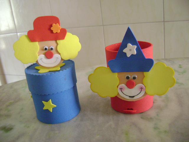 Marcadores: Caixinha decorada, Enfeite de mesa, Fantoche, Palhaços